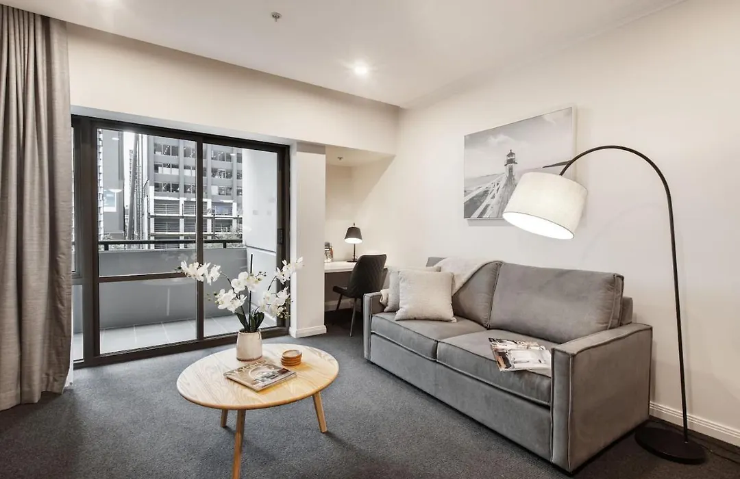 Außerdem bietet es eine komplette Küche mit einem Herd und einem Geschirrspüler. Die nächste Bushaltestelle Exhibition Street/Lonsdale Street liegt nur 5 Minuten zu Fuß entfernt. Das Apartment bietet seinen Gästen eine Terrasse.